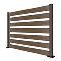 La nostra proposta si compone di parti in alluminio come supporto strutturale e legno composito plastico come assi di recinzione. La struttura in metallo fa sì che l'intero design abbia una migliore resistenza alla pressione del vento, mentre le assi di recinzione in WPC sono disegnate per essere ancora più verosimilmente somiglianti all’essenza del legno. Anche una finitura angolate può essere facilmente montata utilizzando l’apposita struttura atta ad ospitare delle assi di recinzione che convergono per formare un angolo retto.
